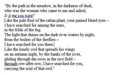 He remembered a few lines of a Bengali poet named Jibonananda Das that Purabi had once translated, sitting on the carpet in that apartment, on some late night, long ago.